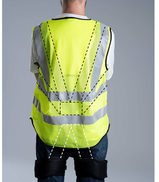 Strategically placed high-resilience rubber inside the high-visibility garment helps reduce strain on the lower back.